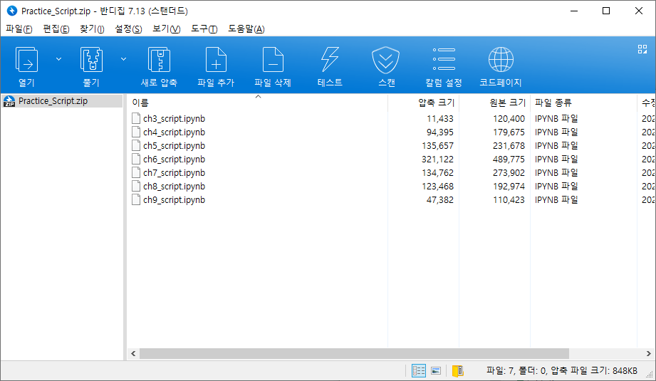 가능하면 주피터 노트북에 코드를 직접 입력해주시기를 바라며 첨부된 스크립트는 참고용으로 사용하시기 바랍니다.