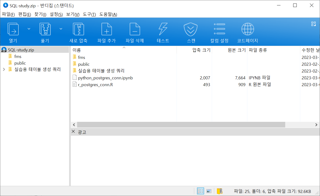 책을 기준으로 c:\SQL-study 폴더에 압축해제해서 사용하시기를 권장드립니다.